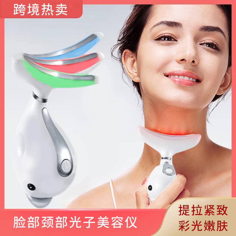 首のシワ取りネックマッサージャー・小型ドルフィン美容器・微電流家庭用ネックリフトアップ機・首元ケア美容器